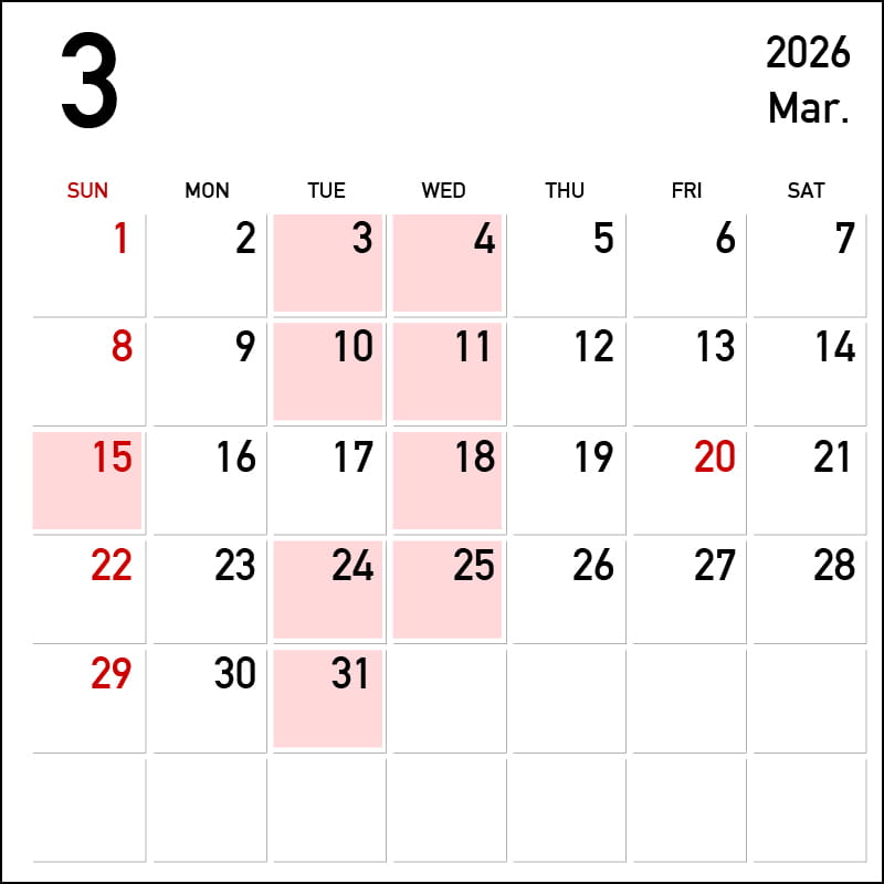 2・3月営業カレンダー